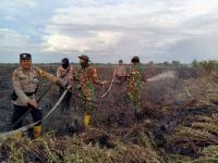 Kapolres Kampar dan Tim Dinginkan Lahan Karhutla Dekat Perumahan Warga