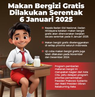 BNEWS - Program makan bergizi gratis dimulai hari ini, Senin (6/1/2025) di 26 provinsi. Program ini merupakan program prioritas pemerintahan Presiden Prabowo Subianto dan Wakil Presiden Gibran Rakabuming Raka.