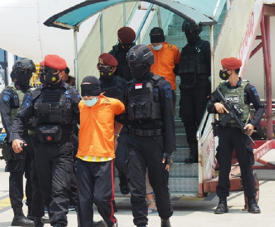 Dengan pengawalan ketat oleh tim Detasemen Khusus (Densus) 88 Antiteror Polri 22 terduga teroris ini dirantai lengkap tangan dan kaki. Mereka digelandang ke Jakarta guna memudahkan proses penyidikan.