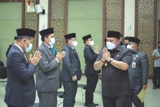 BNEWS - Bupati Kampar Catur Sugeng Susanto melantik 8 Pejabat Eselon II dilingkungan Pemerintah Daerah Kabupaten Kampar, di Aula Kantor Bupati, Rabu (14/4/2021).