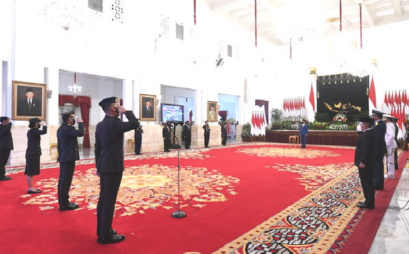Turut mendampingi Presiden di Istana Negara yaitu Wakil Presiden Ma’ruf Amin, Menteri Koordinator Bidang Politik, Hukum, dan Keamanan Mahfud MD, Menteri Sekretaris Negara Pratikno, Kapolri Jenderal Pol Listyo Sigit Prabowo, dan Panglima TNI Marsekal Hadi Tjahjanto. Upacara ini juga dihadiri oleh jajaran Polri di seluruh Indonesia melalui konferensi video.**/ara