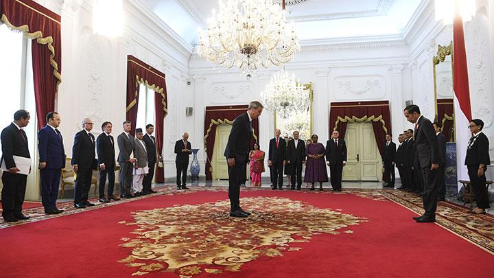 JAKARTA - Hari ini, Kamis (4/2/2021) Presiden Jokowi menerima surat kepercayaan (credential letter) dari 7 duta besar luar biasa dan berkuasa penuh (dubes LBBP) dari negara sahabat.