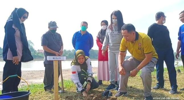 "Hari ini kami melakukan penanaman sekitar 300 pohon buah dan pelindung di 4 lokasi yaitu di depan kediaman Bupati, sekitar Wisata Danau Raja, RTH Pematang Reba dan Komplek Makam Raja di Kota lama," terang Rezita.