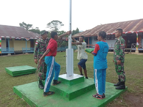 Jelang HUT RI, TNI Yonif 126/KC Latih Pelajar di Perbatasan Papua Jadi Paskibra Selasa, 16/08/2022 | 16:42