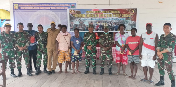 BNEWS - Prajurit TNI Satgas TMMD Reg ke-114 Mimika, menyelenggarakan turnamen bola voly Merah Putih Cup, yang diikuti beberapa kampung untuk membangun kebersamaan. Tema acara ini adalah; Dedikasi Terbaik Membangun NKRI.