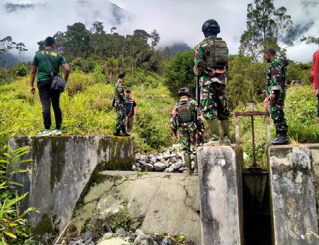 BNEWS - Dandim 1714/Puncak Jaya Letkol Inf Denny Salurerung, S.Sos meninjau pembersihan saluran irigasi Pembangkit Listrik Tenaga Air (PLTA) dan sumber mata air minum di Kampung Bendungan, Distrik Kota Baru Mulia, Kabupaten Puncak Jaya, Papua, Sabtu (17/9/2022).