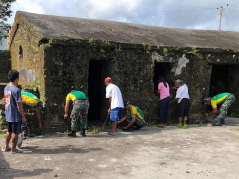 Pembersihan situs bersejarah tersebut dilaksanakan anggota Pos Ramil Pelauw bersama dengan masyarakat Desa Pelauw.