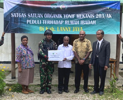 “Selain melaksanakan ibadah Minggu, Satgas Yonif Mekanis 203/AK juga memberikan Al-Kitab, Buku Rohani untuk jemaat Gereja Damai dan mengadakan makan bersama dengan masyarakat sekitar gereja guna mempererat hubungan antara masyarakat dengan personel Satgas yang berada di Pos Makki,” ujarnya.