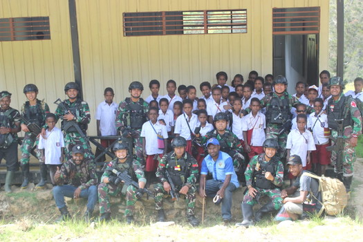 Menurutnya, selain melaksanakan tugas pokok di Pegunungan Tengah, TNI juga turut serta dalam dunia pendidikan, salah satunya dengan menjadi pengajar bagi sejumlah murid yang duduk di Sekolah Dasar Negeri Inpres Manggalome.
