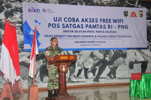 Dalam sambutannya, Danrem mengatakan bahwa uji coba WiFi gratis ini sekaligus peresmian Project CSR Bakti Kominfo dan Palapa Timur Telematika, dilakukan sebagai upaya dan terobosan Korem 174/ATW untuk membantu dan mempermudah akses komunikasi, serta mendukung tugas-tugas prajurit di wilayah perbatasan.