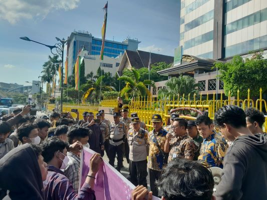 BNEWS - Aliansi Perjuangan Mahasiswa Riau (APMARI) melakukan aksi unjuk rasa ke kantor PT. BUMI Siak Pusako (BSP) di Gedung Surya Dumai, Jalan Jendral Sudirman, Pekanbaru, Jum'at (16/06/2023) sore.