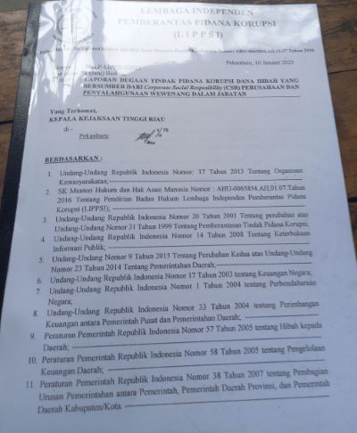 "Laporan Arimbi telah disampaikan ke Ditreskrimsus Polda Riau dengan nomor 026/Yayasan-ARIMBI/LP/X/2022 tertanggal 31 Oktober 2022 dan Laporan LIPPSI Nomor 06/LP-LIPPSI/I/2023 ke Kejati Riau tanggal 10 Januari 2023," kata Matheus Simamora, Selasa (1/8/2023).
