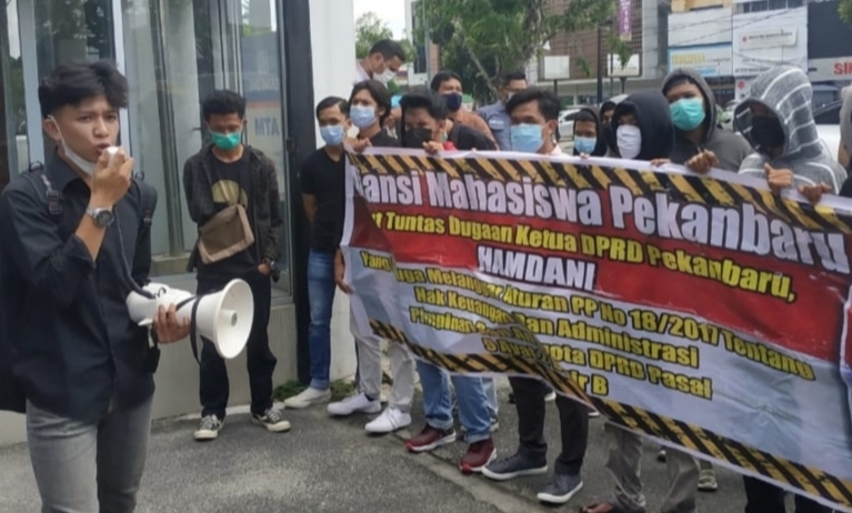 Demo ini awalnya hanya mempertanyakan kepastian hukum terhadap mobil dinas yang digunakan Ketua DPRD Pekanbaru Hamdani. Tetapi masalah itu dianggap Kejari sudah selesai, karena mobilnya sudah dikembalikan dan beritanya sudah ada.