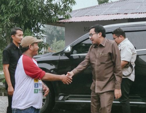 BNEWS - Wakil Ketua Dewan Perwakilan Rakyat Daerah (DPRD) Kota Pekanbaru Ginda Burnama menyambangi warga di Kecamatan Rumbai Timur, Kamis (2/11). Kedatangan Ginda ke lokasi itu disambut hangat oleh warga setempat yang telah menunggu kedatangannya.