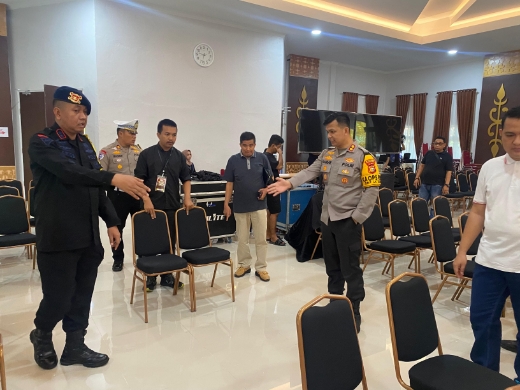 BNEWS - Dalam rangka pelaksanaan debat publik Calon Bupati (Cabup) dan Calon Wakil Bupati (Cawabup) Kabupaten Indragiri Hulu (Inhu), Kapolres Inhu AKBP Fahrian Saleh Siregar bersama jajaran melakukan pengecekan langsung persiapan di Gedung Tepak Sirih, Poltekkes Kemenkes RI, di Kelurahan Pematang Rena Kecamatan Rengat Barat, Sabtu (09/11/ 2024).