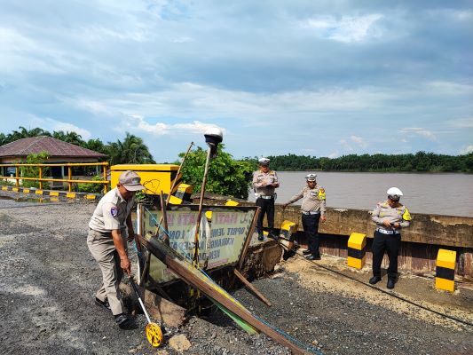 "Titik kerusakan ini cukup serius. Ada satu unit jembatan yang nyaris amblas ke dalam Sungai Indragiri. Jika dibiarkan, akses penghubung antara Inhu dengan Indragiri Hilir (Inhil) akan terputus," kata Kapolres Inhu, AKBP Fahrian Saleh Siregar diwakili Kasat Lantas Polres Inhu, Kamis (12/12/2024).