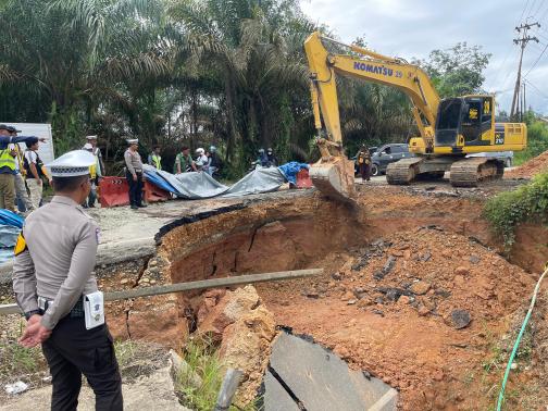 Polres Kampar Bergerak Cepat Tangani Jalan Amblas di KM 91 Tj Alai