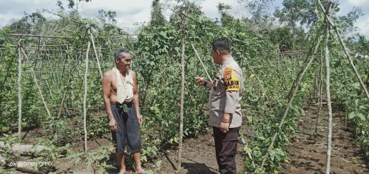 Dalam kunjungan tersebut, Bhabinkamtibmas tidak hanya melihat langsung proses penanaman, namun juga memberikan motivasi dan himbauan kamtibmas kepada warga.