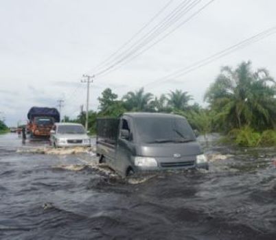 BNEWS - Banjir yang merendam Jalan Lintas Timur (Jalintim) Kilometer 83, Desa Kemang, Kecamatan Pangkalan Kuras, Kabupaten Pelalawan, Riau, hingga hari ini, Kamos (30/1/2025) masih belum surut, meski debit air Sungai Kampar yang melintasi daerah ini sudah turun.