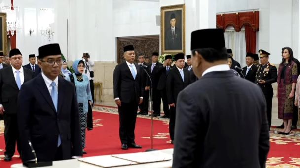BNEWS - Presiden Prabowo Subianto melantik Guru Besar Institut Teknologi Bandung (ITB) Prof Brian Yuliarto sebagai Menteri Pendidikan Tinggi, Sains, dan Teknologi (Mendikti Saintek), di Istana Negara Jakarta, Rabu (19/2/2025). Brian Yuliarto dilantik menggantikan Satryo Soemantri Brodjonegoro.