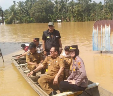 Kapolsek Kampar Dampingi Bupati dan Wabup Tinjau Banjir di Rumbio Jaya