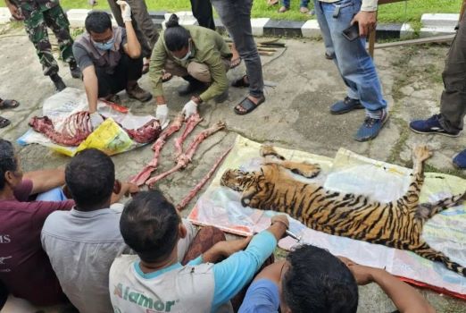 "Saat kami tiba di lokasi yang disebutkan, harimau sudah dibunuh, dikuliti serta dicincang oleh para pelaku," kata Kapolres.