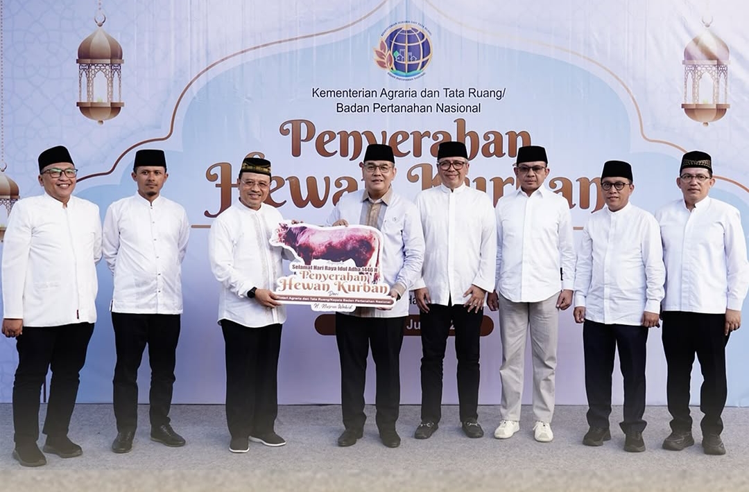 BNEWS - Kementerian Agraria dan Tata Ruang/Badan Pertanahan Nasional (ATR/BPN) menggelar penyerahan hewan kurban dalam rangka Hari Raya Idul Adha 1446 Hijriah, Minggu (8/6/2025).