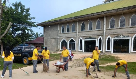 Mereka membersihkan halaman masjid, memotong rumput, membersihkan selokan, dan merapikan berbagai fasilitas di sekitar masjid. Aksi nyata ini menunjukkan komitmen Polri untuk senantiasa hadir di tengah masyarakat dan memberikan pelayanan terbaik.