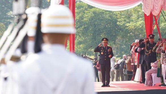 | Kapolda Riau saat upacara HUT Bhayangkara ke-79 |