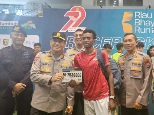 Ternyata peserta Riau Bhayangkara Run 2025 tidak hanya datang dari Riau, juga dari provinsi lain seperti Jawa dan Bali. Bahkan sejumlah peserta dari luar negeri terlihat pula turut hadir mengambil race pack, salah satunya pelari asal Kenya bernama James Kahura.
