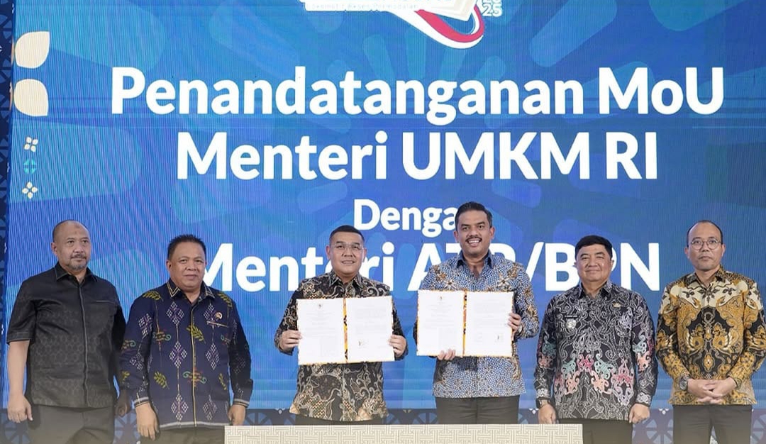 BNEWS - Kementerian Agraria dan Tata Ruang/Badan Pertanahan Nasional (ATR/BPN) memperkuat sinergi lintas sektor yang kali ini ditandai dengan penandatanganan Nota Kesepahaman antara Kementerian ATR/BPN dan Kementerian UMKM, Kamis (25/09/2025). Kerja sama ini menghubungkan dua kebutuhan mendasar masyarakat, yaitu kepastian hukum atas tanah dan akses permodalan untuk mengembangkan usaha.