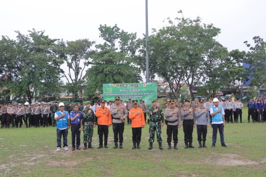 Bupati Kampar Didampingi Kapolres Pimpin Apel Kesiapsiagaan Banjir