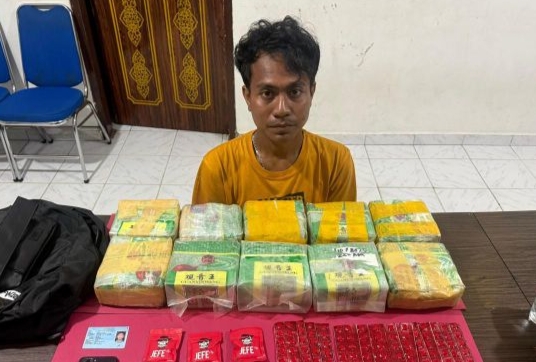“Dari hasil penggeledahan, petugas menemukan satu tas ransel berwarna hitam yang berisi 10 bungkus besar sabu merek Guanyinwang dengan berat kotor 10 kilogram, 28 strip pil happy five, serta enam bungkus ganja kering dengan berbagai merek,” jelas Kombes Pol Putu Yudha Prawira.