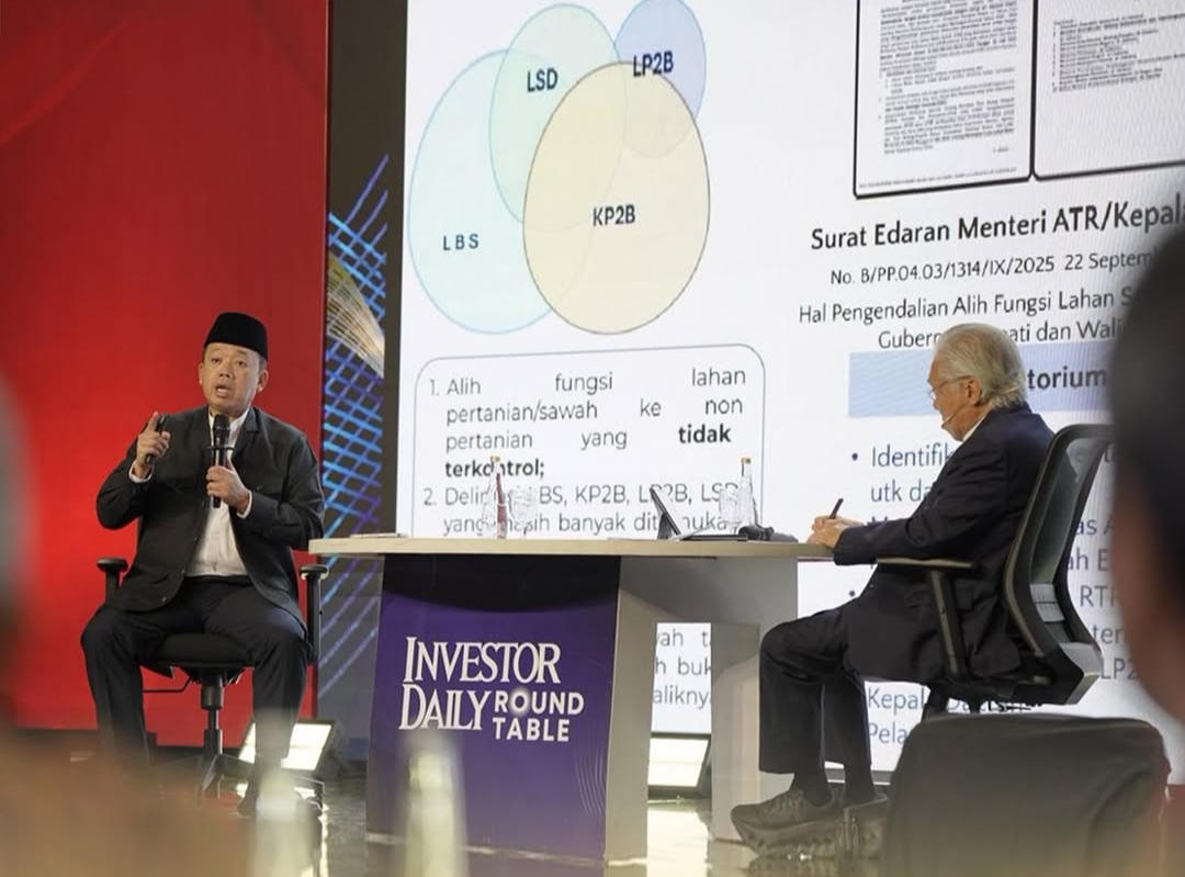 Jakarta - Menteri Agraria dan Tata Ruang/Kepala Badan Pertanahan Nasional (ATR/BPN), Nusron Wahid, menyatakan bahwa upaya menjaga ketahanan pangan nasional tidak akan menghambat iklim investasi. Menurutnya, kedua agenda tersebut harus berjalan beriringan demi memastikan pembangunan dan masa depan bangsa tetap berkelanjutan. Demikian ia sampaikan saat menjadi narasumber dalam acara Investor Daily Roundtable, yang digelar di Jakarta, Rabu (10/12/2025).