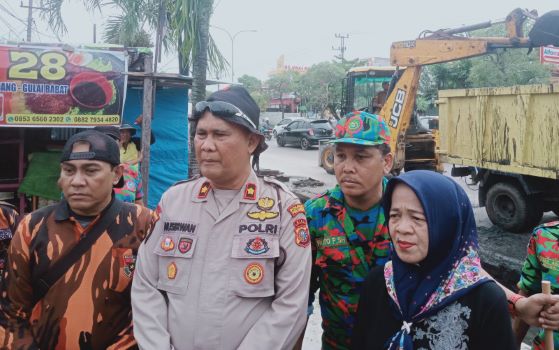 "Pagi ini kita bergabung dengan anggota SPTI, Pemuda Pancasila, dan masyarakat Pasar Baru untuk melaksanakan gotong royong mengatasi banjir. Ini sesuai dengan arahan bapak Kapolda Riau Irjen Pol Herry Heryawan untuk saling berkolaborasi menjaga lingkungan," ucap Kompol Nusirwan.