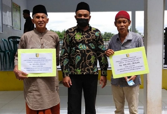 BNEWS - Hari ini, Jumat (30/4/2021), Kepala Desa Tanjung Kecamatan Kuantan Hilir Seberang (KHS), Kabupaten Kuantan Singingi (Kuansing), Riau, menyalurkan Bantuan Langsung Tunai Dana Desa (BLT-DD) bagi warga terdampak pandemi Covid-19, di Balai desa Dusun satu