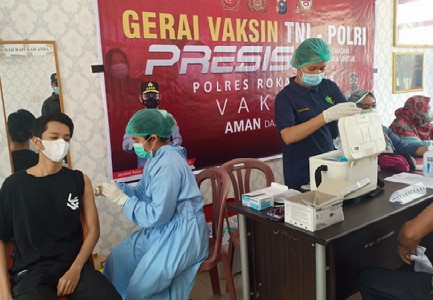 BNEWS - Mempercepat kekebalan tubuh warga, Polres Rokan Hilir (Rohil) kembali melakukan vaksinasi untuk 322 orang di klinik Bhayangkara Polres Rohil dan Kantor Camat Bagan Sinembah Raya.