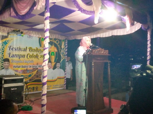 BNEWS - Bupati Bengkalis Kasmarni secara resmi membuka festival lampu colok tingkat Kabupaten Bengkalis di Dusun Siandal, Desa Damai Kecamatan Bengkalis, Kamis (28/04/2022