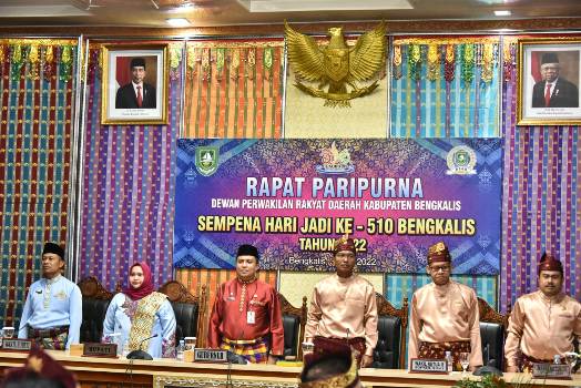 BNEWS - DPRD Kabupaten Bengkalis melaksanakan rapat Paripurna Hari Jadi Kabupaten Bengkalis yang ke-510 tahun 2022, di ruang Paripurna DPRD Kabupaten Bengkalis, Sabtu (30/7/2022). Tema paripurna ini adalah "Bengkalis Sinergi Bermasa".