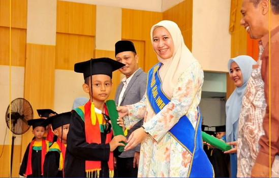 BNEWS - Selaku Bunda PAUD, Bupati Indragiri Hulu (Inhu), Rezita Meylani Yopi menandatangani komitmen penguatan transisi PAUD-SD, yang dilaksanakan bersamaan dengan perpisahan dan wisuda Iqro' TK Al-Khansa Rengat, di Gedung Dang Purnama Rengat, Minggu (04/06/2023).