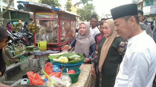 Usai pemotongan pita, Bupati didampingi Ketua TP PKK Ny Sanimar Afrizal melihat lihat pedagang takjil dan bukaan puasa yang ada di pasar Ramadhan, sembari berbelanja beberapa makanan dan minuman.**/hrh