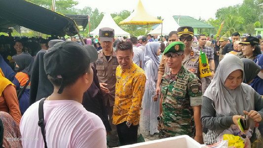 BNEWS - Bupati Rokan Hilir (Rohil) Afrizal Sintong ikut menghadiri pembukaan bazar sembako yang diselenggarakan oleh Kodim 0321, bekerjasama dengan Pemkab dan Polres Rohil, Selasa ( 2/4/2024) di halaman Makodim 0321 Rokan Hilir.