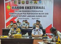 BNEWS - Rakor eksternal dalam rangka persiapan pembentukan pos penyekatan mudik dan operasi Ketupat Lancang Kuning tahun 2021 dilaksanakan Polres Kuansing, dipimpin langsung oleh Kapolres Kuansing AKBP Henky Poerwanto, Senin (26/04/2021).