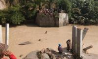 Jembatan Penghubung Dua Desa di Asahan Ambruk Dihantam Derasnya Arus Sungai