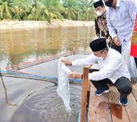 Gubri Tebar Benih Ikan di Pesantren Tahfiz Sains Al-Azhar Addauly Kampar