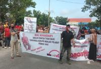 Massa Bentangkan Spanduk "Gubernur Syamsuar Harus Pecat Eki Khadafi" Dibubarkan