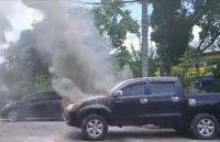 Mobil Hilux Terbakar Saat Parkir di Komplek MPP Pekanbaru