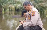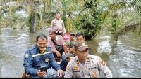Naik Perahu Susuri Banjir, Kapolsek Siak Hulu Serahkan Bantuan untuk Masyarakat