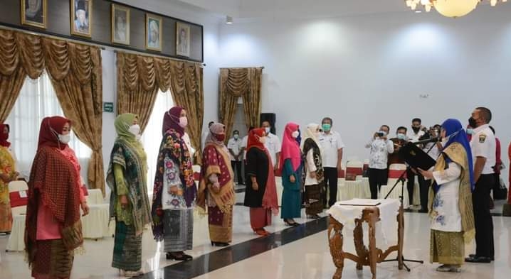 Disaksikan Wakil Gubernur Sumatera Barat Audy Joinaldy, pelantikan 11 Ketua Dekranasda Kabupaten dan Kota itu berlangsung khidmat dengan menerapkan protokol kesehatan.