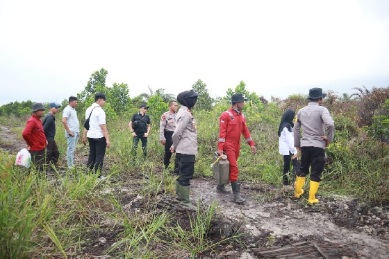BNEWS - Kapolres Kampar AKBP Ronald Sumaja didampingi Kasat Reskrim AKP Alvin Septian Akbar meninjau langsung pemadaman Karhutla di Dusun II Sei Pantau Desa Karya Indah, Kec Tapung, Rabu (31/7/2024).